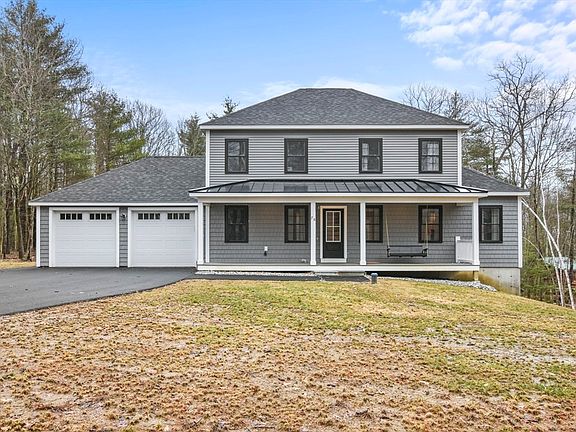 Set back from the road, this BEAUTIFUL and YOUNG 3 bed, 2.5 bath colonial is looking for YOU to come fill it with memories! Enter into a lovely open floor plan with hardwoods flowing throughout starting with the living room with recessed lights and a fireplace. Open to the kitchen with s/s appliances, breakfast bar for those quick meals, recessed lighting and a window overlooking the backyard. The dining area has a slider to the back patio for added convenience along with a pantry closet for your additional storage needs. Half bath with convenient 1st floor laundry, in home office and access to the 2 car garage complete this level. On the second level you will find a primary suite with HW, TWO walk in closets and your very own bathroom with linen closet! Two additional bedrooms along with another full bath. Situated on a 2.4 acre level lot close to Moosehorn Pond! Less than 1 year old there is nothing for you to do but SPRING into your new home!