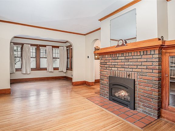 Picturesque 1920's Colonial with stucco exterior. Natural gumwood trim and hardwood floors throughout. Beautiful foyer entry with open staircase. Spacious Living Room has arched French doors, built-in cabinet with leaded glass & gas fireplace. Full, walk-up attic great for storage or additional living space. Large primary bedroom (19x11) has two closets. Basement is plumbed for full bath- not currently in use. Updated electric service-has generator. Great opportunity to make this home your own. Located near the waterfront, beaches, yacht clubs & Durand Eastman Park.