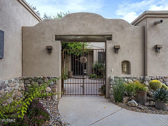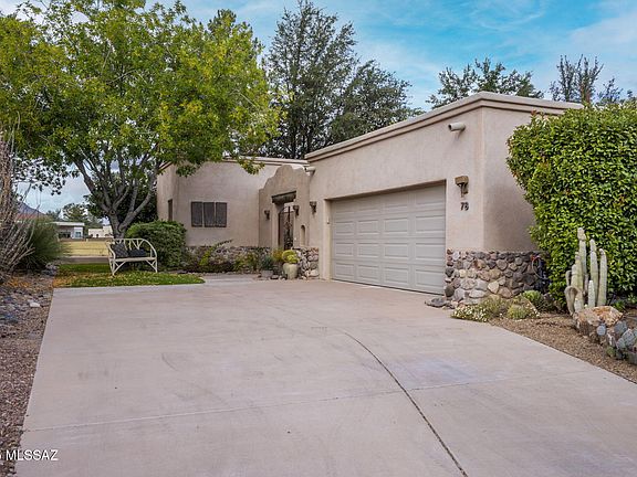 Every detail in this spectacular residence has been thoughtfully curated for comfort, convenience, and refined living. Enjoy views of the Tubac Golf Resort along with the Santa Rita and Tumacacori Mountains. Sophisticated architectural elements blend indoor and outdoor spaces, creating a seamless connection to the home's exceptional landscaping. A beautiful gated front courtyard with fireplace! Covered rear terraces showcase panoramic vistas with access from both the primary and guest bedrooms. Interior highlights include tile flooring, exposed beams, vaulted ceilings, and impressive fireplaces in both the living room and the casita.The stunning gourmet kitchen features custom cabinetry, artisan tile backsplash, spacious island, and upgraded appliances!