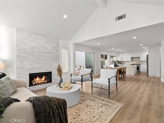 Completely remodeled coastal home in the gated community of Bayview Terrace. This 3-bedroom, 3-bathroom residence offers 1,625 sq. ft. of refined living space with high-end finishes throughout. The open floor plan connects the kitchen, dining, and family areas, creating a seamless flow anchored by a cozy fireplace. The expanded kitchen showcases Walker Zanger quartz countertops, a waterfall island, Monogram appliances, Zephyr vented hood, and a Kohler farmhouse sink with touchless faucet. Additional features include a remodeled laundry room with quartz countertops, new LG washer and dryer, custom garage cabinetry, cedar-lined closets, and a new HVAC system relocated to the attic with full re-piping and water-treatment plumbing. The home also offers new flooring, paint, interior doors, trim, and hardware throughout. Bathrooms showcase a curated mix of luxury finishes, including custom vanities, Walker Zanger tile, Restoration Hardware and Waterworks fixtures, Kohler and Toto toilets, and electric mirrors for a refined, spa-like experience. Outside, enjoy new landscaping with lighting, Orco pavers, and a custom front door and railing. Located in one of Newport Beach’s most desirable neighborhoods with private access to Back Bay trails, and just minutes from beaches, Fashion Island, and top-rated Newport Mesa schools. Community amenities include a pool and spa.