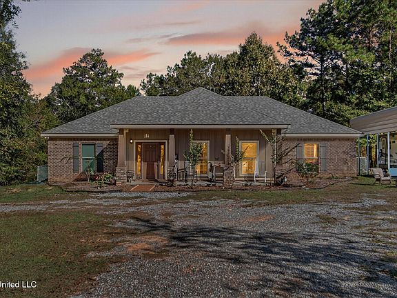 Discover country living at its finest with this charming 3-bedroom, 2-bath brick home located just off Hwy 49 on approximately 2.7 acres. With more than 2,000 sq ft, the open floor plan features a spacious kitchen with solid-surface countertops, an eat-in breakfast nook, and separate dining area. The split-bedroom design places two bedrooms on one end with a hall bath, while the private master suite awaits on the opposite side with double vanities, separate shower and soaking tub. Outside you'll find a fully fenced backyard, a koi/goldfish pond, two storage sheds, a fully functional chicken coop, and a 25×18×12 covered parking area perfect for your boat or RV. Rural tranquility meets convenient access to town—don't miss this one!