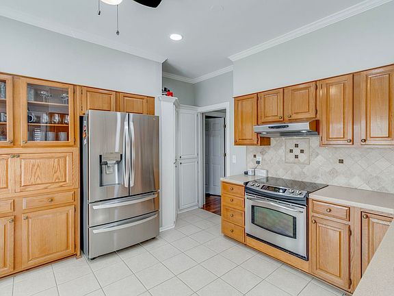 Full-brick single-level homeWalk-in closetsStainless steel appliancesExpansive primary suiteElegant crown molding throughoutDual vanitySoaking tub