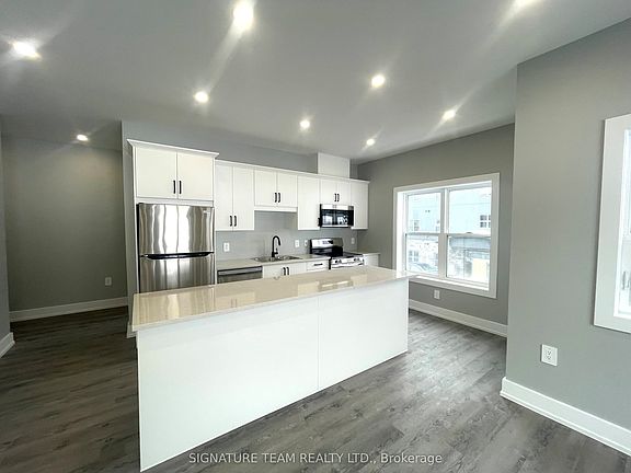 For Rent; A stunning brand new two bedroom two full bath apartment in Eganville, perfect for seniors or professionals seeking a low-maintenance lifestyle. This second floor unit in an elevator serviced, secure building offers a private balcony with lovely views of the valley. The primary bedroom features a walk in closet, wonderful tiled ensuite bath with walk in shower. The modern white kitchen with elegant black trim and subway tiled backsplash is more than you would expect to see in an apartment and the granite counters makes this the talk of the town. All kitchen major appliances are included and each unit has its own laundry hook-up, HRV system, full sized hot water tank and heat pump for your individually controlled A/C. In floor heating that is controlled in each unit is included in your rent as is water, sewer and parking. Hydro and internet/ phone is the tenants responsibility. Eganville is a great family friendly community surrounded by nature!
