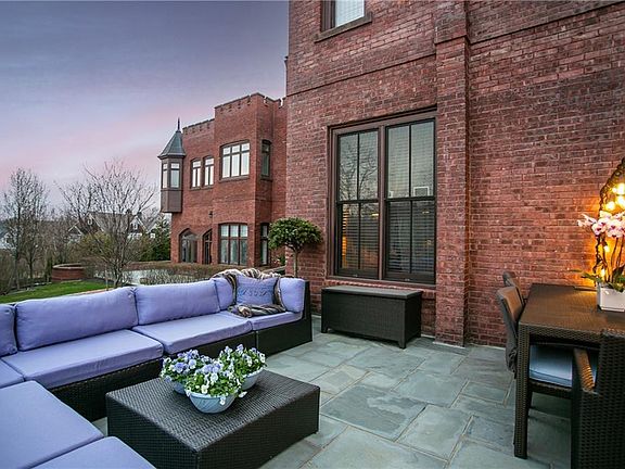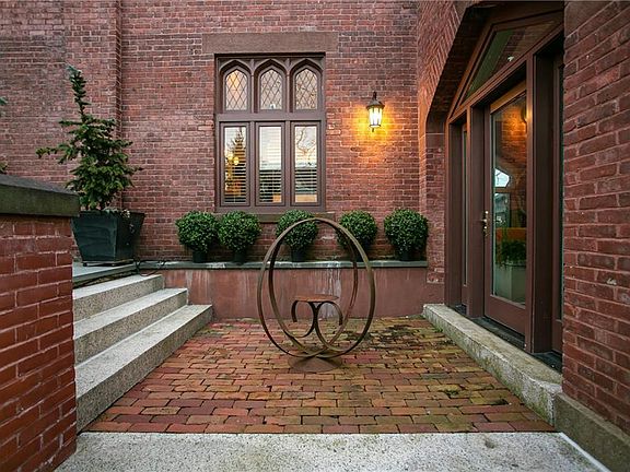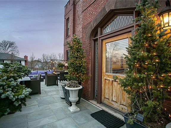 Gorgeous first floor, one level condo in Eastbourne Lodge located in the Kay/Catherine district. This south facing unit has an open floor plan with high ceilings, beautiful hardwood floors throughout and two private entrances. The living room is spacious with a gas fireplace and built-in storage. The eat-in kitchen has been thoughtfully designed with ample storage, a gas range, and an island with a built-in microwave. Just off the kitchen is a stunning sunroom with the original doors of Eastborne Lodge that is currently set up as a second sitting and dining area. Off the living room and the sunroom are doors that open up to an oversized private patio that has plenty of space for outdoor dining and entertaining. The primary suite is quite large with a bonus space perfect for an office and a primary bath with custom designed tiles. The guest bedroom is also generous in size with gorgeous built-in book cases and a private bathroom with shower/tub combo. Additionally, there is a powder room and laundry room just off the impressive foyer. Not only does this unit have a private patio, but there is an elevator which takes you to the shared rooftop with stunning views of Newport. This unit also comes with two off street parking spots and well behaved pets are allowed upon approval. Please note, there is a quarterly payment of $388.18 to build reserve fund that is on top of the HOA fees.