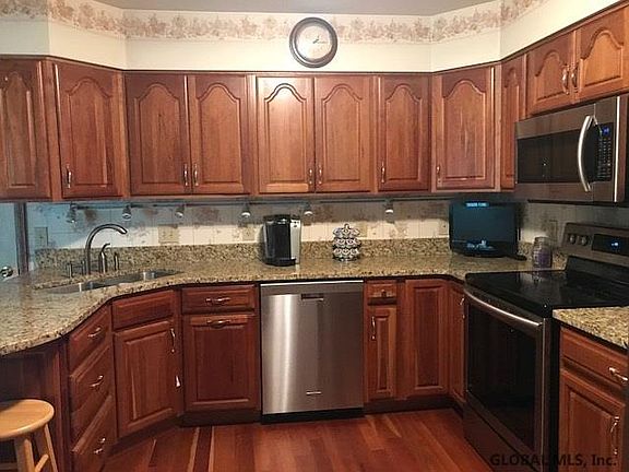 Welcome home! This lovely Cape Cod is situated on a nice spacious cul-de-sac lot with park like landscaped yard. This home has been well maintained and is offering cherry hardwoods, granite kitchen counters, newer appliances,beautiful three season room with sky lights. First floor bedroom. Living room with gas fireplace. Two spacious bedrooms second floor,walk in closet. Full basement with finished area and wood stove. Out side storage shed. Roof 2015. Close to shopping, New York State Thruway and downtown Albany.