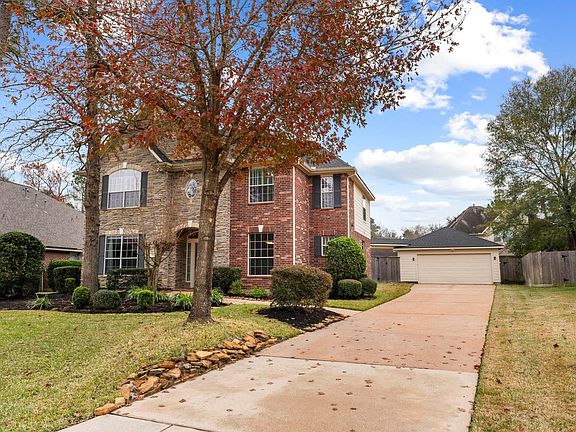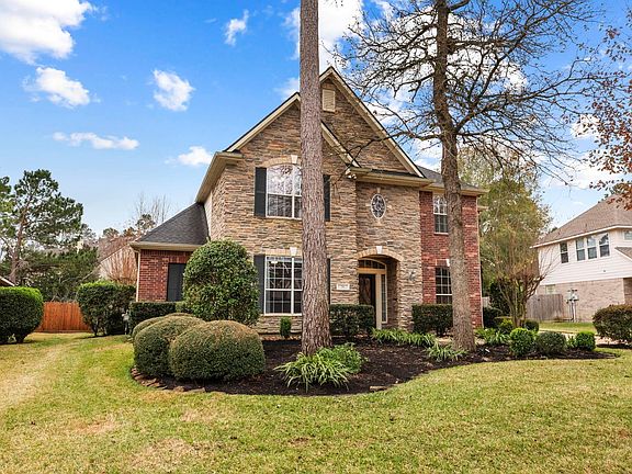 Experience luxury living in this magnificent 4-bedroom home located in the heart of The Woodlands. This residence perfectly blends elegance with functional design, featuring rich wood flooring throughout the main level.The heart of the home boasts a gourmet island kitchen that opens seamlessly to a sun-drenched living area anchored by a cozy fireplace. Host dinner parties in the formal dining room, Office/Study with a built-in library. Retreat to the private first-floor Primary Suite, featuring a spa-like bathroom with double sinks, a soaking tub, a separate shower, and a generous walk-in closet. The second floor offers a spacious game room with a custom accent wall, three guest bedrooms with closet space, and plush carpeting. Outside, enjoy a private oasis featuring a nice pool and a gazebo. **Refrigerator, washer and dryer included **Maintenance Included: Lawn and pool care are covered! Spacious attic for storage. 2 car-garage Full sprinkler system for easy yard care.Move-in ready