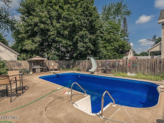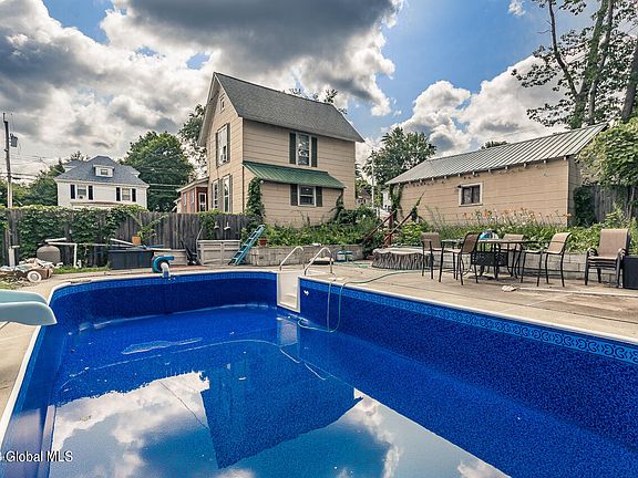 Welcome to this charming 3-bed, 1.5-bath home in Gloversville, NY. A spacious corner lot, 2-car garage, and an inground pool with slide await. Built in 1910, the home has updates, including an updated kitchen with Kenmore Appliances. The pool has a brand new liner (installed July 2023) and will be fully functional in early August (water is filling now). While the second floor layout may not appeal to all, it offers unique possibilities. Laundry is conveniently located on the first floor. Water heater has been replaced. Explore this character-filled gem with ample amazing outdoor space. View the Matterport 3-D tour to get a full tour from the comfort of your living room or contact an agent to take a private tour of the home today.