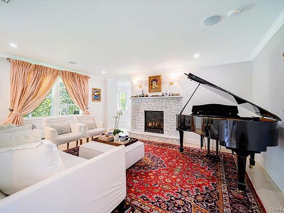 This property perches on a beautiful mountain and is flanked by double gates with two long driveways. Trails allow residents to wander their own secluded forested refuge while viewing across the Hudson River at the Catskill Mountains; the property is one of the highest areas in town. The landscaped gardens bloom from spring through fall. In the backyard, the Bluestone patio supports a grey trellis with Adirondack chairs, an excellent gathering place while enjoying the heat from the firepit. A 12ft x 29ft deck with Trex floors overlooks the property. When fitted with lounging furniture, the grill is just steps to allow for outdoor meals- perfect for breakfast, cocktails or relaxing dinners. While outside, listen to your favorite music from 4 outdoor speakers which are powered by the entertainment controlled inside. A separate barn on the property offers 30ft x 24 ft of additional space on slab concrete and has electricity which is perfect for converting to a pool house or even guest residence.