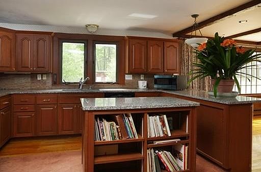 Located in the heart of Claypit Hill on over 2 acres of beautiful land is this privately sited Multi-level home. Features include an open kitchen with granite countertops, island, penninsular, built-in desk, pantry and dining area with pellet stove, There is a living room with fireplace, heated sun room and family room with built-in shelves. The walk-up attic provides access to storage or potential finished space. The 2 attached garages can shelter multiple cars or used to store boat/recreational vehicles. Enjoy the tranquillty and permitted recreational activities of the Upper Mill Brook Conservation Area consisting of 115 acres owned by the Town and Sudbury Valley Trustees to the rear of this property.
