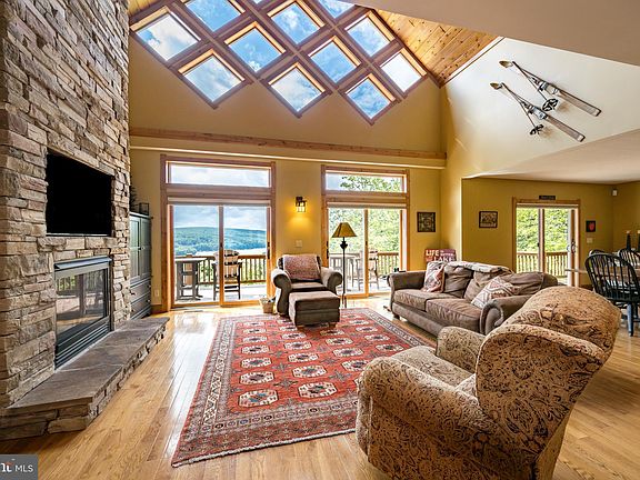 Rustic Lakeview Retreat with Expansive Mountain & Lake Views Discover your perfect Deep Creek Lake escape with this stunning 4-bedroom, 4.5-bathroom vacation home, offering breathtaking panoramic views of the lake and surrounding mountains. Designed for comfort and style, this rustic yet elegant retreat boasts three fully finished levels, vaulted ceilings, and an abundance of natural light pouring in through large windows that frame the spectacular scenery. Inside, you'll find gorgeous wood flooring throughout, a spacious kitchen with granite countertops, stainless steel appliances, and two impressive stone fireplaces that add warmth and charm to both the main living area and lower-level family room. A fifth sleeping area in the cozy loft provides additional space for guests. Three of the four bedrooms offer serene lake views, with two featuring luxurious private baths complete with large soaking tubs and ceramic tile accents. Whether you're enjoying morning coffee in the screened sun porch or unwinding in the hot tub overlooking the lake, this home is designed for relaxation. Step outside to enjoy the beautifully updated landscaping, a large composite deck perfect for entertaining, and a thoughtfully designed fire pit area with ample seating—ideal for gathering with family and friends under the stars. Lake access adds even more value, giving you the best of Deep Creek right at your fingertips. Located just a few miles from Wisp Resort, this home is the perfect year-round getaway—whether you’re hitting the slopes in winter or enjoying the water in summer. With a paved driveway, scenic setting, and timeless appeal, this is mountain lake living at its finest.