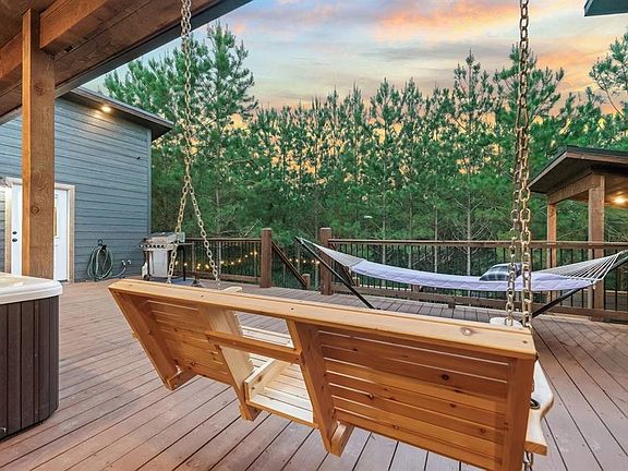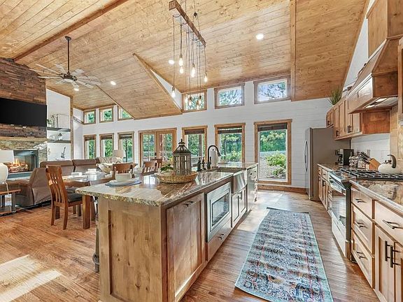 Income producing property! Welcome to this stunning cabin, situated on a generous 1-acre lot, offering both tranquility and entertainment. With 2 beds, bunk room, and 2.5 baths, this meticulously designed home provides a perfect balance of comfort and elegance. As you step inside, you'll be greeted by an open and inviting floor plan, showcasing the exceptional craftsmanship and attention to detail. The spacious living area features large windows that flood the space with natural light and gorgeous views. The kitchen is a true chef's delight, boasting a gas stove and sleek stainless steel appliances. One of the many highlights of this home is the expansive covered deck, complete with a luxurious hot tub and outdoor living area. Throughout the home, you'll be captivated by the remarkable design and attention to detail. From the high-quality finishes to the thoughtfully selected fixtures, every aspect of this home exudes luxury. It is primely located near all the BB has to offer!