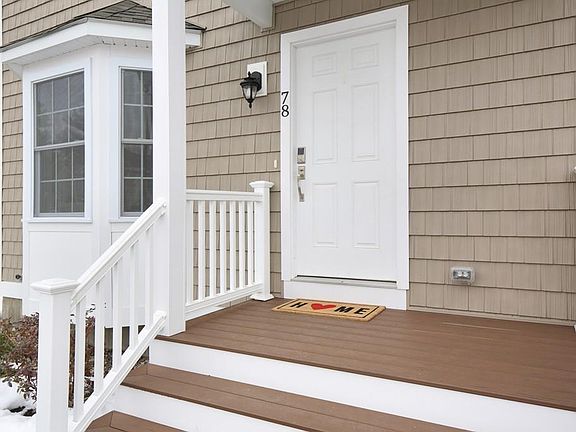 Almost new! Two year old END UNIT duplex style townhouse beautifully styled with dark oak hardwood floors and neutral walls throughout. Spacious open concept floor plan. The living room has a cozy gas fireplace and and bay window. The kitchen is sunny and light with white cabinets, granite counter tops, stainless steel appliances, an island with seating, dining table with sliding doors leading to the deck. This unit is in one of the best locations in the complex, with a serene wooded view from the back deck. Gas heat and central air. Upstairs has two large bedrooms with cathedral ceilings and full bathrooms off each bedroom. The master bedroom has automatic shades for the windows. Ample closet space. All appliances included, washer, dryer, and refrigerator! Full basement with high ceilings and expansion potential. Low association fees. 2nd floor laundry. Great commuter location! First showings at the open house on Saturday 4/7 from 9:30-11:30 & Sunday 4/8 from 1-3:30 pm