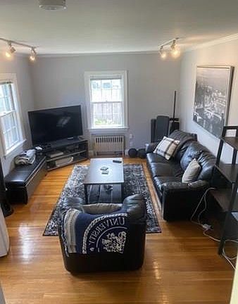 The unit is a duplex townhouse style apartment in a 2 family on a quiet street in Newton Corner. First floor offers an open concept updated kitchen with dishwasher, microwave and disposal, dining area, and living area plus bedroom and full bath. Upstairs on the 2nd floor are two additional bedrooms. The lower level is a large unfinished basement with washer/dryer hookup and bulkhead. Large common yard with swingset. There is a small garage (this unit uses the left side) plus 1 additional parking in the driveway. No Pets or smoking. Tenant pays for all utilities except exterior common water. High efficiency gas steam boiler. Walk to Lincoln Eliot Elementary and Walnut Park Montessori school and Jackson school. Walk to the express bus to Boston (2 blocks), Starbucks (4 blocks), Dunkin Donuts (3 blocks) or a 15 minute walk to the commuter rail. Quick drive to Whole Foods, Trader Joes, Green line (subway), and Mass Pike. Broker is owner. Avail Sept 1st.