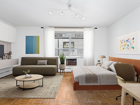 Nestled in one of Toronto's most sought-after neighbourhoods, this cozy top-floor bachelor condo offers a fantastic opportunity in the elegant South Hill community. Ideal as a starter home or a perfect pied-à-terre, this suite features a functional layout, hardwood floor, and a large window that brings in natural light. While the unit is in need of some cosmetic updating, it presents a great canvas for personalization and value-add potential. Enjoy the convenience and walkability of being steps to Forest Hill Village, Casa Loma, TTC, parks, shops, and cafes all while living in a well-maintained, quiet building surrounded by mature trees and stately homes. Don't miss this opportunity to create your own stylish retreat in one of the city's most desirable pockets. Low maintenance fees include the property taxes. Onsite superintendent & laundry in building. 1 locker included. *Some images have been virtually staged to demonstrate potential furniture layout.
