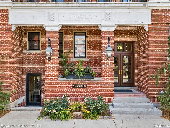 Welcome to this one-of-a-kind loft, where modern industrial design meets modern living in the heart of Brush Park. This stunning 1,200-square-foot, single-level condo is an urban enclave offering an accessible downtown location with light & space. Step inside & be awed by the striking open-concept layout, defined by its authentic architectural elements. Exposed Brock block ceilings and a harmonious mix of polished concrete and tile floors create a sleek, minimalist aesthetic. The space is softened by the warmth of abundant exposed brick and poplar wood trim accents, adding character and charm throughout. The living area is bathed in natural light from large windows that frame views of the Detroit skyline. It's the perfect backdrop for both everyday living and entertaining. Just off the main living space, a private deck provides ample room for an outdoor living creating an ideal spot for morning coffee or evening cocktails with a view. The kitchen has great flow and ample countertop space with function, featuring a fantastic butler's pantry/storage room that will delight any home cook. The primary bedroom is a sanctuary, offering a generous walk-in closet to keep your space organized. The expansive primary bathroom is a retreat, boasting a large, separate shower and another tub/shower combo to accommodate more than 1 to bathe at once. Convenient dedicated laundry area inside the primary bath is accessible. Comfort is paramount, with radiant in-floor heating providing cozy warmth in the winter, complemented by a mini-split system for efficient central air conditioning during warmer months.
