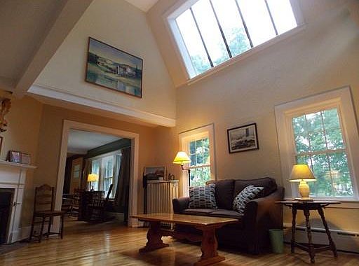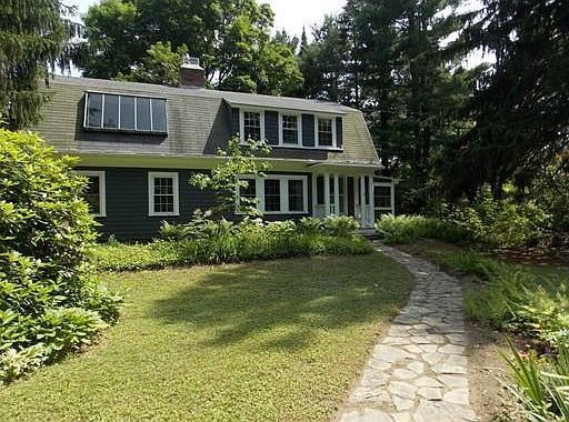 Charming country living, on two acres! This gorgeous 4-bedroom, 3-bath classic Dutch Gambrel, surrounded by majestic trees has much to offer, including beautiful hardwood floors, 2 fireplaces, 2 sheds, fenced-in yard, pasture & more. The fire-placed living room features a two story, cathedral vaulted ceiling with an enormous skylight for a ton of natural light. It opens to the formal living room with a 2nd fireplace, leading to the beautiful butterfly split staircase. Off the formal dining room, the 4-season sun room's perfect for a breakfast nook. The updated kitchen features gleaming granite counters, handsome cabinetry and a wall of windows overlooking more than an acre of lovely green pasture. Upstairs a large landing leads to 4 bedrooms, including the master bedroom which features a convenient 3/4 bath and huge walk-in closet. An open-air, covered breezeway connects to the garage. Short walk to summer band concerts on the common, & minutes to highway and Commuter Rail station.