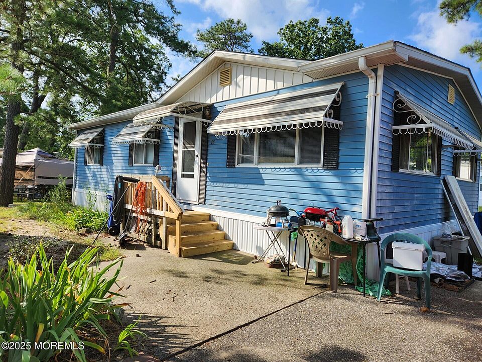 Start the next chapter of your life in this spacious double wide mobile home in adult community. Home has a new roof, new skirting, new front porch and new back steps, updated bath with vinyl planking floor, new vanity, sink and commode plus walk-in shower with glass doors. Living room features an electric fireplace and opens to dining area. Smooth top electric range, dishwasher and refrigerator. A three season room off the porch offers warm weather living space or extra storage. An extended driveway can accommodate at least 3 cars. A storage shed gives you additional storage. There are two clubhouses where you have an opportunity to socialize at birthday parties, day trips, bingo, cooking classes, arts and crafts, special lunches and dances. Less than 30 minute drive to Jersey shore plus many other local cultural and recreational attractions.