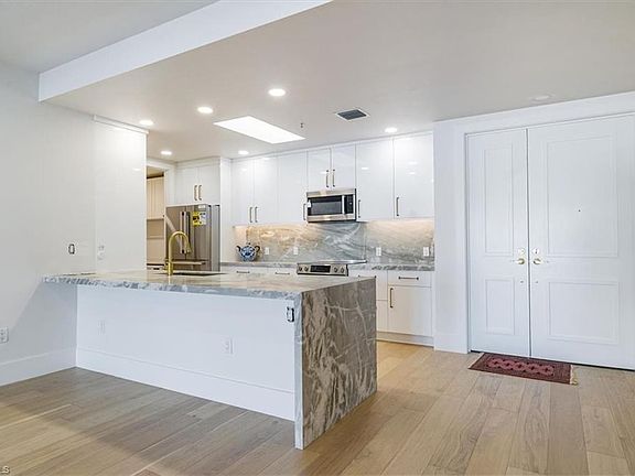 Experience the epitome of luxury living in the heart of downtown Naples, located above Provident Jewelers on prestigious 5th Avenue. This completely remodeled unit features 2 spacious bedrooms and 2.5 baths, all of which have been thoughtfully redesigned for modern living. Wide plank hardwood floors flow seamlessly throughout, while the chef's kitchen showcases high-gloss white cabinets, brushed gold hardware, BOSCH appliances, and stunning quartz countertops. The den area includes a built-in bar and shiplap wall accents, and the private laundry area offers ample storage. The owner's suite impresses with French door entry, hardwood floors, balcony access, and an en-suite bathroom with a large walk-in shower and floating tub. The guest suite features an en-suite bath, closet, and balcony access overlooking Cambier Park. Additionally, the residence boasts a rooftop swimming pool for owners and a reserved garage space secured under the building, just seconds away from sandy beaches, restaurants, and shops. There is nothing this convenient in downtown Old Naples with all these features and amenities. The very best available!