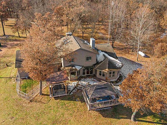 Outdoor enthusiast's paradise! Beautiful, spacious home on 40 private acres in Rome! With 550' of 14-Mile Creek frontage, groomed trails throughout, and bordering DNR land on two sides, this is an outdoors lover's dream come true! Over 4,000 square feet with a light filled living room with stone fireplace, cathedral ceiling, loft overlook, and wall of windows; family room and dining area looking out over an expansive deck, primary suite with 3 season porch, roomy bath, fireplace, and walk in closet; loft office space; vast lower level with a sizeable rec room, large full bath, bonus rooms, kitchen area, storage, and stairs to garage; the 30x26 pole barn, extra sheds, pet fence, extra large yard, and circular drive. Immerse yourself in the luxury of the Great Outdoors ... everyday!