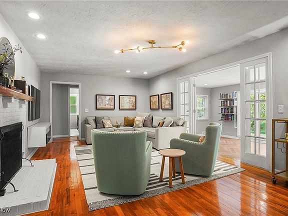 Now you have an incredible opportunity to have your own private oasis in Hudson! This charming, ranch home, nestled on 5 ACRES, offers a perfect blend of private tranquility & convenience. Minutes from historic downtown Hudson & easily accessible via Route 8/Turnpike. Enjoy the ease of being connected to public water & sewer. Home has a lovely front deck that serves as a peaceful retreat, offering serene views of the private, wooded lot. You may even spot a few deer! New stamped concrete patio ('23) off covered back porch, leading to spacious yard, fully enclosed by new privacy fence ('21)—perfect for outdoor relaxation/entertaining. New vinyl & stone siding ('20) on home & oversized 2+ car garage (featuring a new garage door/opener '21), this home shines from the outside in. The garage also includes a loft for extra storage or workspace. Step inside & feel the warmth & openness of this stunning home. Sunroom (also perfect as an office, playroom, or even exercise area) features floor-to-ceiling windows, offering stunning views of the wooded lot, along with brand new LVT Herringbone flooring. Just through the French doors, you'll find a cozy living room w/ beautiful, low-maintenance gas fireplace & refinished hardwood floors ('20). The eat-in kitchen is an entertainer's dream, with new LVT Herringbone floors, a breakfast bar, fully remodeled in '23. Enjoy quartz countertops, shaker-style cabinets w/ under-cabinet lighting, stainless steel appliances, & tile backsplash. Primary bedroom is spacious w/ 2 closets, & the additional bedrooms are both generously sized w/ beautiful hardwood floors. Standout main floor bathroom was completely remodeled in '22, offering modern style & comfort. The basement has a half bath in laundry room, & large, carpeted rec area—perfect for recreation/entertaining. Loads of storage! New in '23-25: sump pump, Front Door, Kitchen Window, rock beds in landscaping, chimney repaired. New furnace/central air ('20).
