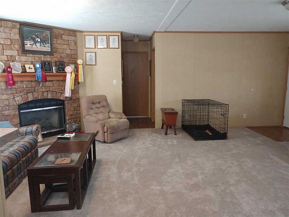 Affordable Horse Property that you've been looking for! 6.4 acres with 3 stall center isle barn, equipment shed and hay storage shed. All pastures fenced with with water, run-in shed has electricity, outlet and light, hay feeder with roof, 3 12x12 matted stalls, 12x16 tack/feed room, Aluminum Herringbone Fold Down top sliding doors and aluminum front stalls by Armour, hot water in barn, 72x200 arena. 3BR 2B split design home overlooks arena and pastures. Master bedroom has attached bath with soaking tub, shower, double vanities and walk-in closet. Living room has corner stone gas fireplace. Eat-in kitchen, all appliances convey. Additional 3.6 acre adjoining, mostly cleared lot can also be purchased to make a total of 10 acres for $35,000.