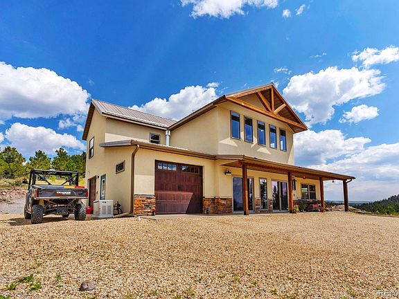 ARTIST-CRAFTED MOUNTAIN RETREAT WITH PANORAMIC VIEWS -- Completed in 2024, this extraordinary 36.17-acre retreat in the Wakefield Hills Sub of Custer County, Colorado, was envisioned and designed by an artist to harmonize with its surroundings. Perched atop a hill, the home offers ever-changing vistas of the Sangre de Cristo Mountains, framed by sculptural rock outcroppings and skies that come alive at night with a dazzling Milky Way. Inside, light cascades through abundant windows and soars to cathedral ceilings, illuminating the open living, dining, and kitchen areas, where a propane fireplace warms the living room. The main level hosts a serene primary suite with a Japanese-inspired bath, featuring a round soaking tub and separate shower. A nearby laundry room with an integrated half bath adds convenience. Upstairs, a loft unfolds as both art studio and entertainment space, complemented by a guest bedroom and full bath. Throughout, artistic details lend individuality and soul. Powered by solar and designed for harmony with the land, the home also offers an attached oversized garage with ATV entrance, greenhouse, and storage shed. This is more than a home; it's a canvas for living amidst nature, wildlife, and endless sky.
