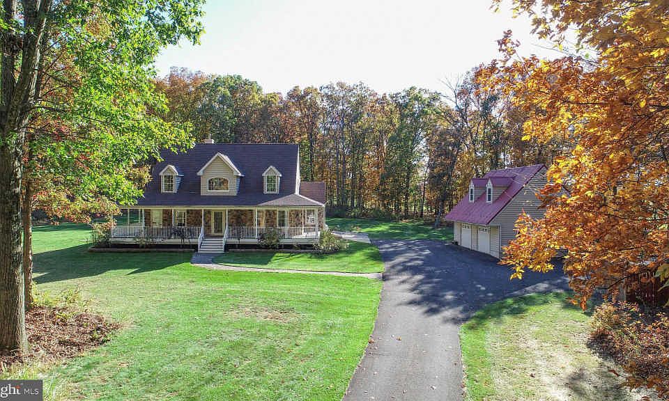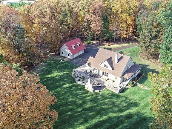 Welcome home to this custom-built cape cod home on nearly 10 acres of scenic land! All 2,498 sq ft of this home has been lovingly planned and cared for by its current owners. This home and property was created to optimize the seclusion and privacy offered by the land, while also providing a home basked in natural sunlight and treasured surrounding yard. Initially greeted by the cherished front wraparound porch with maintenance free pvc railings and recessed lighting, enter the two-story foyer of the home. Throughout the first floor is hardwood flooring, extensive custom molding and broad trim, along with an entire home surround sound, central vacuum system and newer HVAC. Immediately you are drawn to the back of the home~s two-story family room with stone surround pellet stove and 3-panel glass slider door with a view of the yard and outdoor entertainment space. To the right of the foyer is an elegant dining room with crown molding and view of the front wraparound porch. The kitchen is between the dining and family rooms and features oak cabinetry, center island with propane cooktop, granite countertops, stainless steel appliances, tile backsplash, recessed lighting and the breakfast area with a view of the yard. The large laundry room, closet, and door to the backyard are alongside the kitchen with durable and stylish tiled flooring. Back through the family room is the first floor master suite, with cedar paneled walk-in closet and large master bath complete with a jetted jacuzzi tub! Upstairs is a loft area with views of both the front picture window and the two-story family room with a view of the outdoors. Two nicely sized bedrooms, one with an oversized walk-thru closet, and the recently refreshed hall bathroom, complete the upstairs. The basement is the footprint of the home and has high ceilings with a bilco door to the driveway side of the home. Entertain family and friends on the outside paver patio extending the length of the home. The outdoor kitchen includes two built-in grills (propane and charcoal), and a cooktop. Enjoy brisk evenings by custom stone constructed wood burning fireplace and watch the sun set through the trees. The detached oversized 2-car garage features a wood burning stove and pneumatic air compressor tanks with attachment hoses. There~s additional storage or potential to finish the second floor (34~ X 25~) of the garage. This home has a welcoming ambiance and attractive open yard in a wooded setting off a quiet country road.