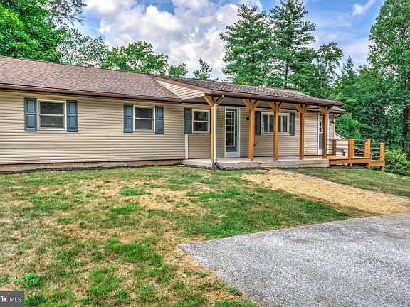 Back on the market for your gain! Welcome home to a nearly completely new single-family ranch home in Aspers! Located on a large 2.4 ACRE lot backing to trees and a peaceful creek, this home boasts a tranquil setting with all the structural and cosmetic updates you could want!! With 3 bedrooms, 2 full bathrooms, and a HUGE two-car detached garage with additional workspace (as well as a third garage bay attached to the home) this house leaves nothing to be desired! Upon entering the main living space from the covered front porch entry, you will be wowed by the soaring vaulted ceilings and completely open concept main floor! The whole house has been reframed and opened up to provide a perfect space to gather with family or entertain guests. The brand new, attractive & durable luxury vinyl plank floors continue throughout the living space and make every transition seamless. The gourmet kitchen is outfitted with stylish white cabinetry, lovely quartz counters, stainless steel appliances, and a colored subway tile backsplash. Access to a rear deck from the kitchen area expands your living space outdoors and allows views of the serene backyard. A brand-new laundry room has also been added to the main floor for maximum convenience. In the bedroom wing, the primary suite features a lovely bedroom with cozy carpeting, a large ensuite bath with an attractive double vanity and beautiful tiled walk-in shower, as well as a walk-in closet. Two additional bedrooms and a second full bath with tub/shower combination round out the main floor. Downstairs, the basement provides practical storage space and access to an interior garage bay. This home also features nearly all new plumbing/electrical, and the septic system has been inspected and is in good shape! A brand new, efficient HVAC system will keep you cool the rest of the summer, and cozy this fall. Contact us to tour this beautifully renovated home on a large, private lot today!