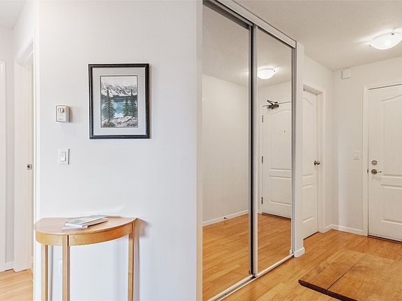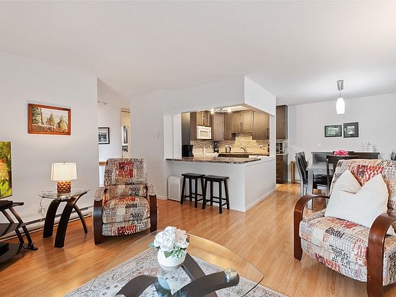 Top-floor unit at Peachtree Place Estates with 2 bedrooms and 2 full bathrooms. This home has been thoughtfully updated with new flooring, windows, and lighting, along with a redesigned kitchen featuring custom cabinets that extend to the ceiling and additional cabinetry topped by a wide countertop with seating. Take in the mountain views from the enclosed patio, updated with new energy-efficient windows and custom blinds, creating a cozy additional seating area. Ideally located across from Ben Lee Park and just steps to groceries and transit, this is an excellent choice for convenient, walkable living. Parking and storage locker included. Restrictions: Rentals allowed, cats allowed with restrictions, sorry no dogs.