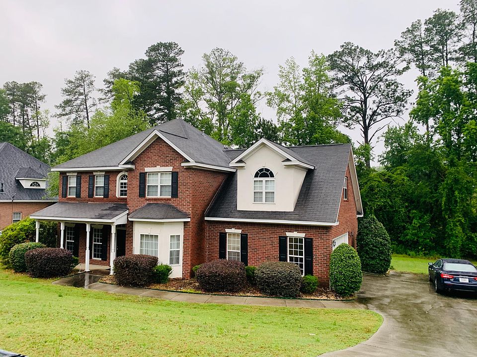 This stately brick home with a 2 car garage is situated on a large lot in The Locks. Excellent schools and proximity to outdoor recreation with the convenience of nearby shopping & dining. Two-Story foyer is flanked by the formal living room and the formal dining room with a bay window and picture frame molding. Entry hall has a half-bath and leads to the great room with a fireplace and wall-to-wall windows with plantation blinds. The open breakfast room is open to the great room and the kitchen. Kitchen boasts a breakfast bar, a desk area, and 2 pantry closets. Appliances to remain including the washer and dryer in the spacious laundry room. All bedrooms are upstairs with ceiling fans. The owner's bedroom has a beautiful tray ceiling and 2 walk-in closets. Owners bath has a garden tub, separate shower & WC, and 2 vanities. Another full bath is on the second level. Bonus room can serve as an office with a large dormer area. Back deck overlooks a plush back yard!
