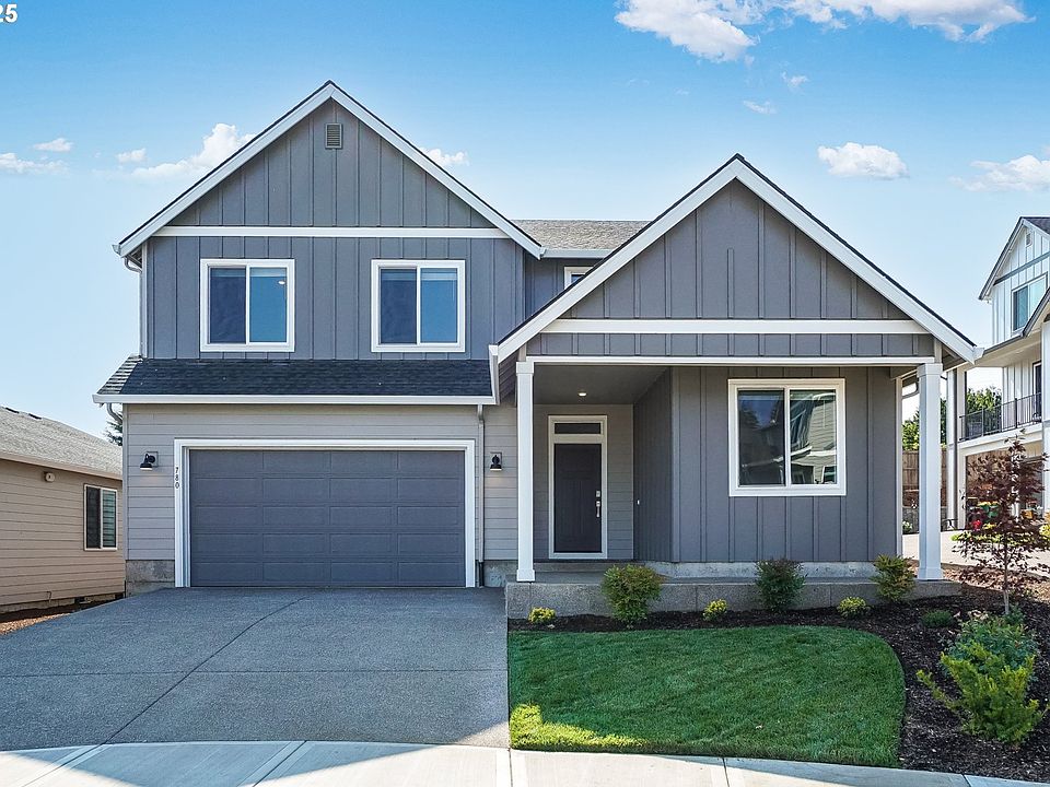 This new construction two-story Larview plan in Parkview Terrace features a main-level bedroom and full bath off the foyer, perfect for guests or a home office. At the back of the home, the kitchen, dining area, and great room connect in an open layout with direct access to a back patio and fully fenced, landscaped yard. Upstairs, a central loft provides extra living space near three additional bedrooms, including a primary suite with private bath and walk-in closet. Interior highlights include quartz countertops, shaker-style cabinets, LVP flooring, two-tone paint, landscaping, and fencing. Just 35 minutes from Portland and close to McMenamins Grand Lodge, residents enjoy dining, entertainment, and Thatcher City Park with walking trails and a dog park. This home also includes central air conditioning, a refrigerator, washer and dryer, and blinds—all at no extra cost! Located on homesite 146, this home is move in ready. Rendering is artist conception only. Photos are of a similar home, features and finishes will vary. Incentives available with the use of our preferred lender!