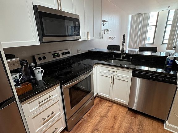 Fully renovated modern bathroomFull-scale renovationModern kitchenGenerous room sizesBrand-new engineered hardwood flooringWhite shaker style cabinetsSleek granite countertops