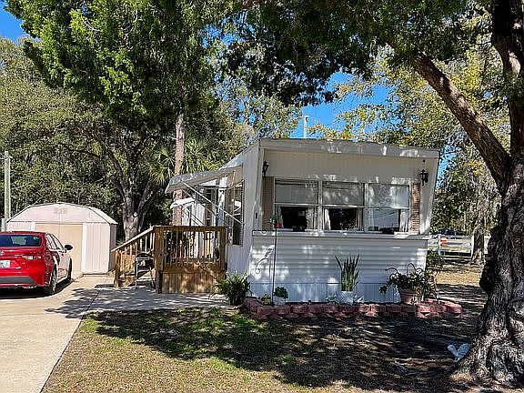 1966 singlewide 1 bedroom 1 bath mobile home in a 55+ Community. This is a large 1 bedroom home with lots of closets and storage space. This home is partially furnished and has window units for air conditioning. Storage shed is included and a large driveway for ample parking. Carport can be added if needed. Lot rent includes water, garbage, sewer and lawncare at this time. Perfect for full time residents or snowbird during your winter months in Florida. All residents must be 55 plus to reside in this community and must pass a background and credit check with no evictions or criminal history on record. Four times the income of the lot rent to qualify for the park guidelines. If interested in the home please call 352-564-0201.
