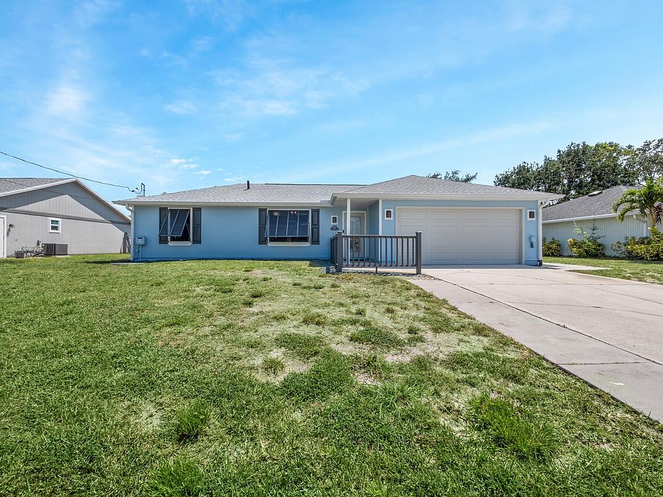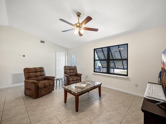 Absolutely adorable open concept 3 bedroom and 2 full bath beach style home with Bahama shutters, NEW ROOF (2022) and IMPACT WINDOWS. Freshly painted, new kitchen cabinets, new appliances, updated bathrooms w/glass showers and wood laminate flooring throughout. Florida room with A/C ready for entertaining leads to spacious backyard completely enclosed with freshly painted wooden fence, two large storage sheds, mango & banana fruit trees and backs to a canal. 2 car garage w/epoxy flooring and slatted walls with plenty of shelving to organize your things. Tankless water heater, new electrical panel and hookups for RV and generator. City water and city sewer. Quiet street, near elementary school and close to shopping, dining, and entertainment.