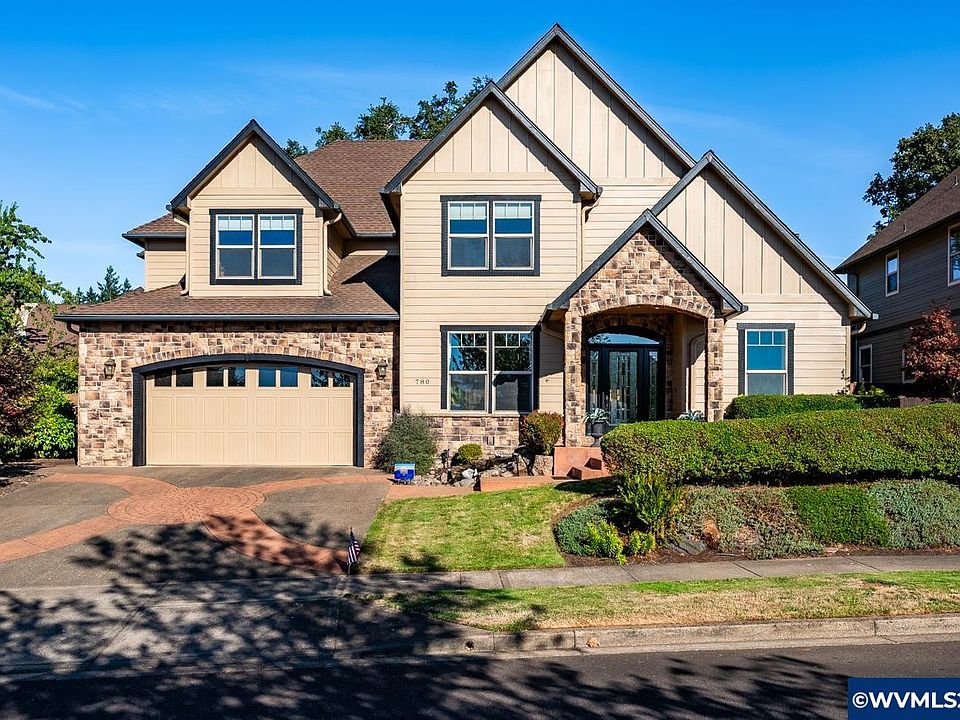 You won't want to miss this gorgeous custom home in coveted Abiqua Heights! This four bedroom, 2.5 bath home also features an office/den and formal dining. The primary bedroom with en suite is on the main level with large shower, jetted tub, dual sinks, and vanity. The 2nd floor features a loft and remaining bedroom. This beautiful landscaped home includes a water feature as you approach the front porch, UGS, covered patio, seating area with pavers and storage shed.