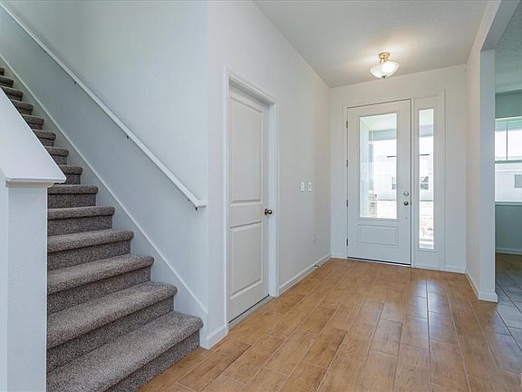 One or more photo(s) has been virtually staged. Under Construction. This 2-story 4 Bedrooms, 3 Baths 'Winston Plan', has an Open Concept Kitchen/Living/Dining area featuring an island with Quartz kitchen countertops, 36" kitchen cabinets and a walk-in pantry. A flex room perfect for a formal dining and a bedroom located on the main floor. Upstairs features a large bonus room, the secondary bedrooms, and the primary master suite, complete with a walk-in shower and oversized walk-in closet. Brick paver driveway and walkways. Lawn care is included with HOA dues. Community will feature a resort-style lap pool, clubhouse, pickleball courts, splash pad for kids, open lawn areas, fenced dog park, and nature walking trails throughout the community. A golf cart-approved community is close to The Villages, area retail shopping, and area hospitals.