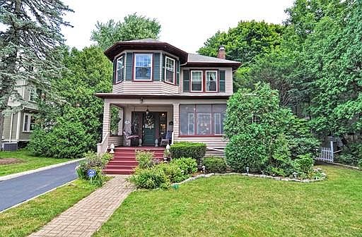 This beautifully updated walk-to-town Victorian in Mitchell School district features 4-5 bedrooms, 3.5 baths and boasts historic features and modern amenities.Welcoming front porch with swing and rocking chair leads to a screened in porch with dining for 6. Front door opens to gracious foyer and french doors leading to a large living room with wainscotting, beamed ceilings and a wood burning fire place. Off the livinng room behind the french doors is an office with wainscotting, built-ins and 8 windows. A dining room with banquet-sized table has two built-in chins cabinets and a window seat.White kitchen has granite counters and attached breakfast room and pantry. A half bath and family room with gas fireplace and built-ins complete the first floor.2nd floor features 4-5 bedrooms and 3 full baths including 1 with skylight and laundry. There is a media/playroom in the basement and a full attic for expansion.Level, landscaped yard with patio, perrenial gardens and 2car detached garage.