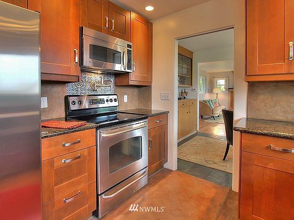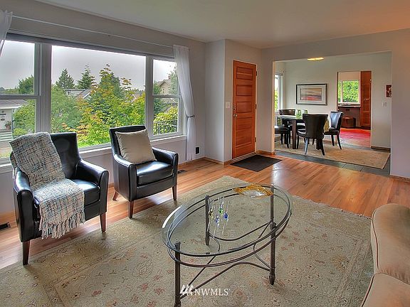Under a Tuscan Sun on Phinney. Mid-century sensibilities of 1956 w/Italian flourishes, perfectly situated on expansive 6180SF corner lot. Views of the Olympics w/sunny SW exposure,yet this gem still very private. Updated kitchen replete w/prep & farm sinks, pot filler, slab granite & concrete floors shares main level w/2 BRs, full bath, living & dining rms. Refinished hardwoods, remodeled BAs, spacious family room, 2 Fireplaces & fresh paint & new carpet. Updated windows, electrical & plumbing.