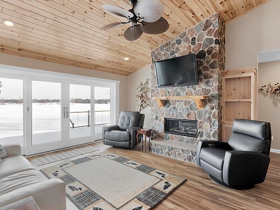 Virtually NEW construction on a gorgeous waterfront lot in Canadian Lakes. Open concept with vaulted ceilings and waterfront views from the entire home. Well appointed with large waterfront deck, completely landscaped, aluminum dock sections, heated 3 stall garage, large crawl space and attic area for storage along with high end interior finishes like, quart, stone fireplace, large walk in master shower and closets. MUST SEE if you are looking for the Canadian Lakes waterfront lifestyle.