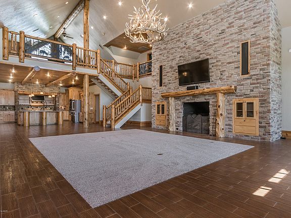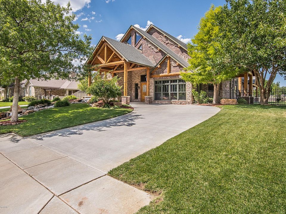 AMAZING IN THE GREENWAYS. This Beautiful Mountain Lodge Style Home with Rustic finishes is located on the Parkway. Waterfall feature in the front! INCREDIBLE GREAT ROOM with IMPRESSIVE, Large, STONE FIREPLACE. Beautiful Kitchen with double ovens, gas range. Spacious Formal Dining, Large LOFT GAME ROOM, Isolated Master opens to Patio. Fireplace by the whirlpool tub in master bath. 2nd Downstairs Bedroom has Private Bath. Large Utility with pet door accessing dog run. Home has outdoor cooking area and fireplace. You will love the wonderful touches: Split logs, iron accents, antler chandeliers. 4BR, 3.5 baths, 2 Living Areas, 3 Fireplaces, 3 Garages-One Stall has separate access, perfect for a man-cave. Storm Shelter in Garage Priced below recent appraisal. One Newer HVAC
