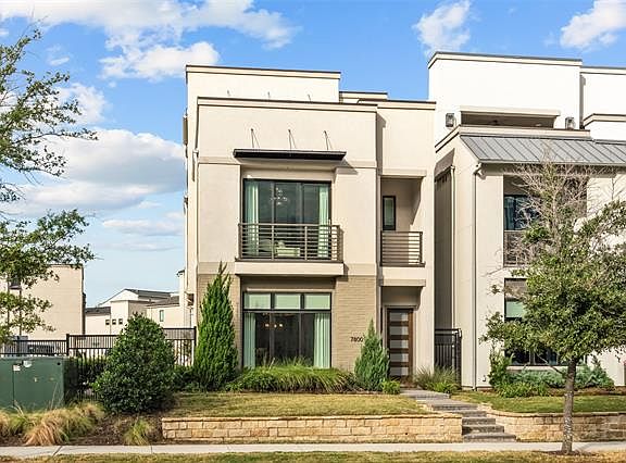 Enjoy luxury urban living in this high-end community located just seconds from casual or fine dining, shopping, boutiques, and major entertainment venues. This contemporary home, built by the quality builder, Britton Homes, sits on a premium corner lot and is loaded with energy-efficient features and sleek modern finishes.Impressive engineered hardwood floors flow from the spacious entry foyer throughout the first level. In the Living Room, the stunning modern chandelier sparkle, and natural light streams from the Low-E dual pane insulated wall of windows. A clerestory window over a modern fire glass fireplace adds a cozy ambiance in the Dining Area. The Kitchen island with breakfast counter can accommodate additional seating for casual dining. This masterfully planned Kitchen is showcased with smaller clerestory windows, under-counter lighting, and recessed canned lighting that showcases the gleaming quartz countertops and glass tile backsplash. The Kitchen is equipped with GE Monogram stainless steel appliances, including a 6-burner gas cooktop and vent hood, convection oven, built-in refrigerator, and microwave oven. A walk-in pantry and white cabinetry offer plenty of storage options.In addition to the Master Suite, two secondary bedrooms are located on the second level and reached by elevator or the stairs. The Master Bedroom retreat includes two balconies and a sophisticated spa-like Master Bathroom complete with impressive split floating vanities with quartz countertops and decorative lighting. A spacious walk-in shower and a large soaking tub are beautifully accented with decorative tile. The two secondary bedrooms have ample closet space. Another Full Bath and a Utility Room with built-in cabinets and counter space are conveniently located on this second level.You'll love the panoramic vistas from the third level deck. The deck's covered area offers a built-in outdoor gas fireplace with colorful fire glass and motorized solar screens, extending your outdoor living space season. The optional Half Bath and wet bar were added, making it a perfect outdoor living space for relaxing and entertaining.This exclusive home is situated minutes from the homes of corporate giants such as JC Penney, Liberty Mutual, Toyota, and FedEx and with convenient access to Hwy 121 and North Dallas Tollway.