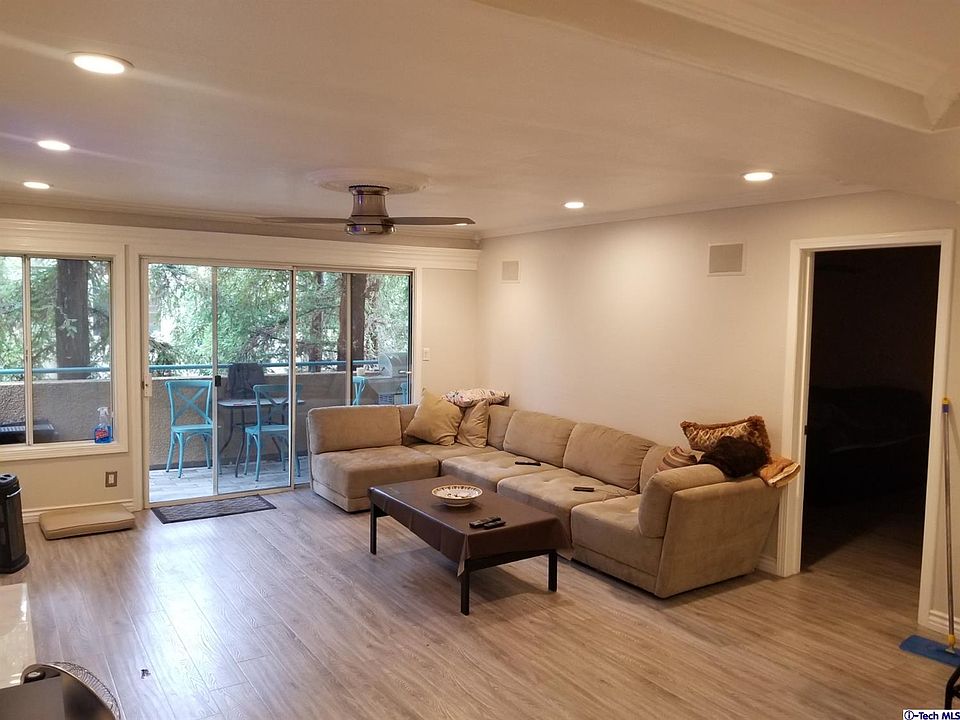 Location, Location, Location. Desirable area of Canoga Park Awesome 3 bedroom 2 bath condo. Completely updated recessed lighting, new shower, sound system, wood shutter, freshly painted, washer and dryer, hardwood floor, Fireplace in living room, updated kitchen with stainless steel appliances. Master En-suite, Double Sink walk in Closet. Very quiet unit with a large balcony opened to the common area with a nice quiet view. You will love the mature Landscaping inside the community with the Pool, Jacuzzi and Tennis Court. 5 minutes to The Village, Restaurants, Topanga Mall, Warner Center. Easy access to 101 and 118 Freeway, two car garage. This condo priced well and will not last long.