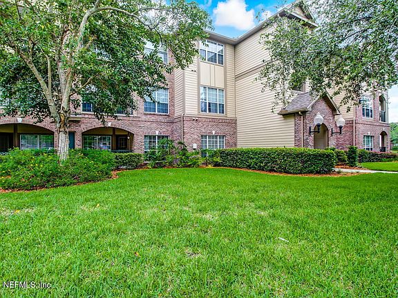You will feel right at home in this spacious and peaceful top floor 2/2 condo only minutes away from the St. Johns Town center and the Beaches. Easy to relax at the nearby resort style pool or while shopping at the nearby Town Center, and only a short hop over to the Beaches for a walk. With no one to worry about above you, this unit has vaulted ceilings and is filled with abundant natural light with a seamless easy flowing floorplan. There is a private balcony for morning coffee or a lazy afternoon. Gleaming hardwood-style flooring in common areas. Two large bedrooms with walk-in closets. Primary has ensuite bathroom, and all rooms have ceiling fans. Cooks Kitchen with breakfast bar, range, refrigerator, dishwasher and microwave. Laundry room with washer and dryer included. HVAC system was recently replaced. New Roof for the building was just installed September 15th, 2025 . NO NEW RENTALS ALLOWED IN THIS COMMUNITY. Amenities include a sparkling pool with waterfall feature, community cabana and grill, sports court, along with walking paths, fitness room, party/social room and business center all of which are super convenient to BLDG 10. Be sure to check out the floor plan and virtual walk thru!