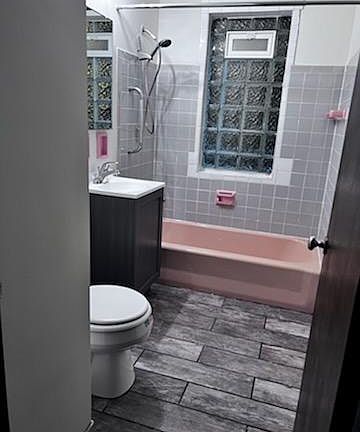 2) Remodeled bathroom with new toilet, vanity and LED lights