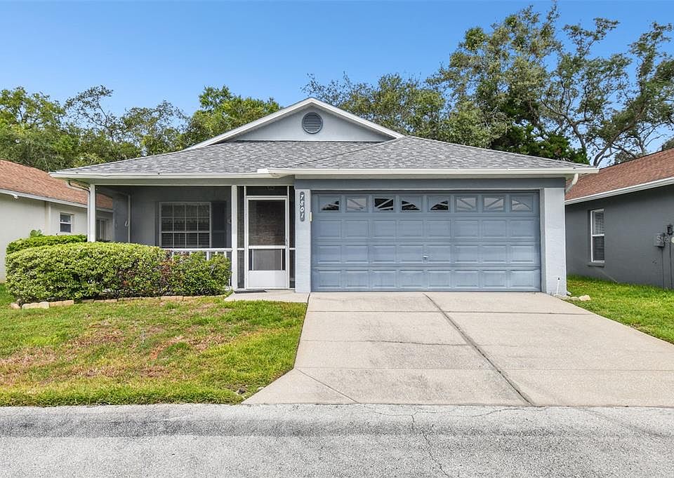 Calling all first-time homebuyers and investors! Located in the neighborhood of Oaks at River Ridge. This Charming 3-bedroom, 2-bath home plus 2 car garage is your perfect opportunity to step into the real estate market. Whether you're looking for a cozy place to call your own or a smart investment, this home has it all. The home has 1275 sq ft of comfortable living space, brand new LG appliances throughout the kitchen, plus a new washer and dryer. Roof replaced in 2020 and a new HVAC system installed in 2021. This home features a screened-in front porch offering a stunning view of the neighborhood pond, perfect for relaxing and enjoying the scenery. Home does require some TLC but meets all the essential requirements for a 4-point inspection. Most recent inspection was completed in 2023. Home features a spacious living and dining area with vaulted ceilings and sliding glass doors that open onto an enclosed lanai. The large kitchen boasts ample counter space, perfect for cooking and entertaining. Backyard, though cozy, offers a private retreat with a privacy fence. Primary bedroom includes an ensuite bathroom with a walk-in shower, providing a relaxing space to unwind. Guest bedrooms share their own bathroom with a sit-in tub, offering comfort and convenience for visitors. Shopping and entertainment options are near-by ensuring you have everything you need within easy reach. Tampa International Airport is just a 50-minute drive away, making travel convenient for business or leisure. For golf enthusiasts, Timber Green Country Club is only a few minutes away. (Preferred lender offering Credit Appraisal)