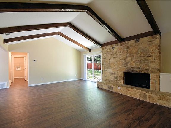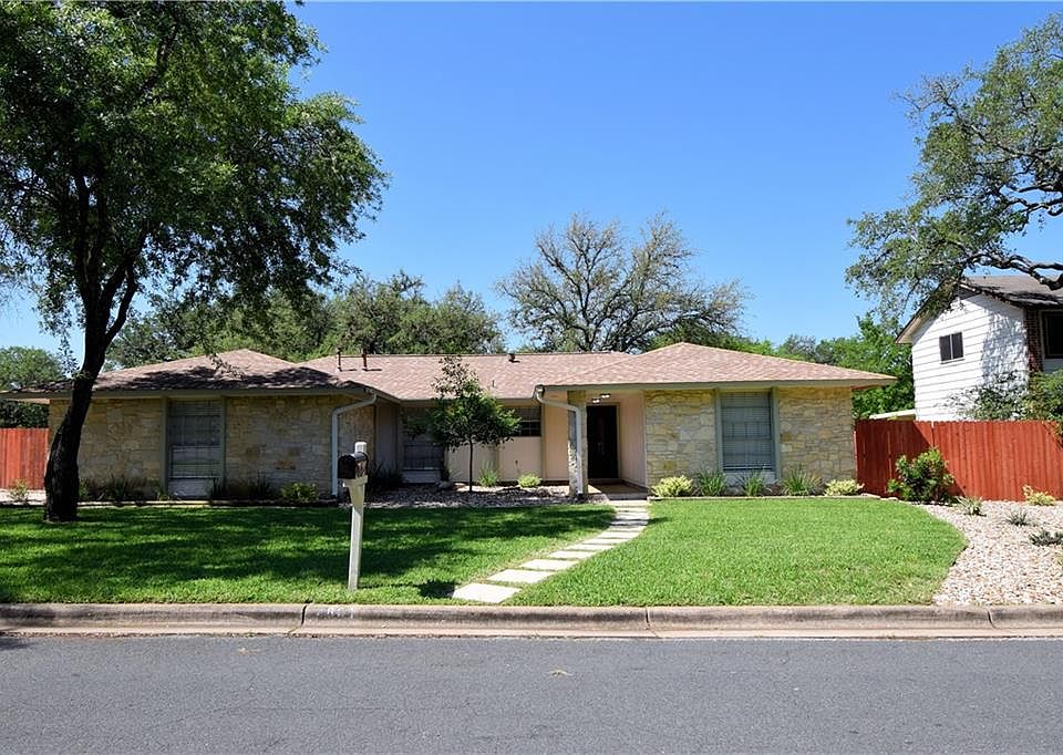 Modern updates in this 4B/2B home. Enjoy granite counters & tile backsplash in the kitchen & master bath. Vinyl plank floor and fresh paint throughout. Updated recessed lighting & plumbing fixtures. Living room has vaulted ceilings with wood beams & fireplace. Master suite separated from other bedrooms. Copious amounts of storage offered through the house. North Austin locationright off 183 near shopping/dining. Private backyard with large live oak trees and pavers leading to front. New SS fridge ordered