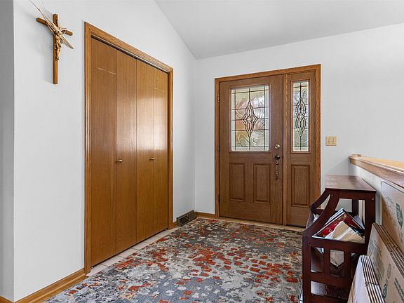 Welcome to this well cared for 3-bedroom, 2-bath home nestled in the desirable Hawks View neighborhood of Machesney Park. Surrounded by mature trees and thoughtful stone landscaping, this property offers a peaceful setting and inviting curb appeal. Inside, the open layout features vaulted ceilings, a cozy living room with a fireplace, and a seamless flow into the dining area and kitchen. The kitchen is equipped with stainless steel appliances, painted white cabinetry, and a new Kinetico reverse osmosis water system. Just off the dining area, the four-seasons room is a true highlight, offering beautiful natural light year-round and a relaxing view of the backyard. The spacious primary suite offers comfort and convenience with an attached bathroom featuring heated floors, a walk-in shower, and a large walk-in closet with custom shelving. The additional bedrooms are nicely sized and offer great closet space. Downstairs, the finished walkout basement adds even more living space with a large recreation room and an additional finished bonus room that is ideal for gaming, crafting, or a home office. This home also features solar panels installed in July 2020 (with a transferable lease that brings the electric bill down to roughly $19 per month), a gutter leaf filter system added in 2020, and an irrigation system that is currently capped but can easily be reactivated by the new owner. A 3-car garage and backyard shed provide plenty of storage and functionality. Located near parks, schools, and all the conveniences of shopping along Route 173, this home combines comfort, efficiency, and thoughtful upgrades in one of Machesney Park’s most sought-after subdivisions. It has been exceptionally maintained and lovingly cared for, offering peace of mind and pride of ownership to its next owners.