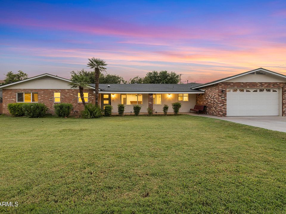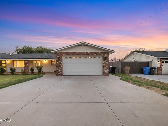 Welcome to your newly renovated 5-bed, 4.5-bath single-level home, which offers 3,455 sqft plus a 568 sqft detached guest house with its own kitchen and private entrance—perfect for guests, multi-gen living, or rental income. Major updates in 2025 include a fully remodeled kitchen with gas cooktop and two islands, all bathrooms, new flooring, dual-pane windows, the roof, HVAC, and wiring. The flexible layout features two primary suites, a spacious great room, and a cozy fireplace. Outside, enjoy a 14,288 sq. ft. lot with a covered patio, lush grass with flood irrigation, and three mature orange trees. With no HOA and a prime Phoenix location near schools, shopping, and freeway access, this home offers space, comfort, and versatility.