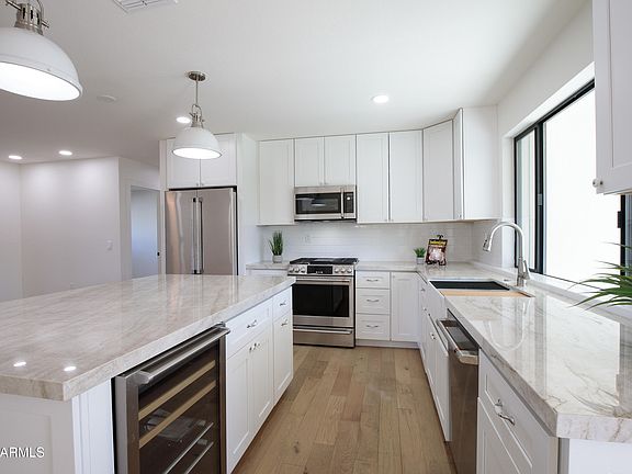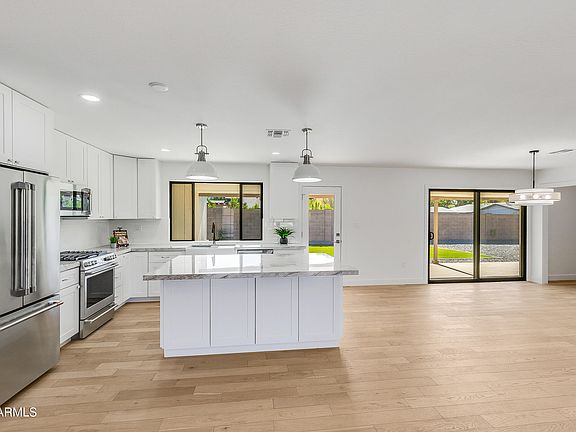 Completely rebuilt from the ground up! Modern ranch-style home on a quiet cul-de-sac near 7th Ave & Northern. Everything is NEW—roof, sewer, HVAC, electrical, insulation, tankless water heater, dual-pane windows, doors, lighting & more. Stunning interior w/ hardwood floors, quartzite counters, shaker cabinets, Café appliances, gas cooktop, beverage cooler & farmhouse sink. Primary suite offers custom glass shower, walk-in closet & private HVAC. Spacious ⅓-acre irrigated lot w/ RV gate, covered patio & room for pool, pickleball court or ADU. Modern design, natural light & perfect North Central location!