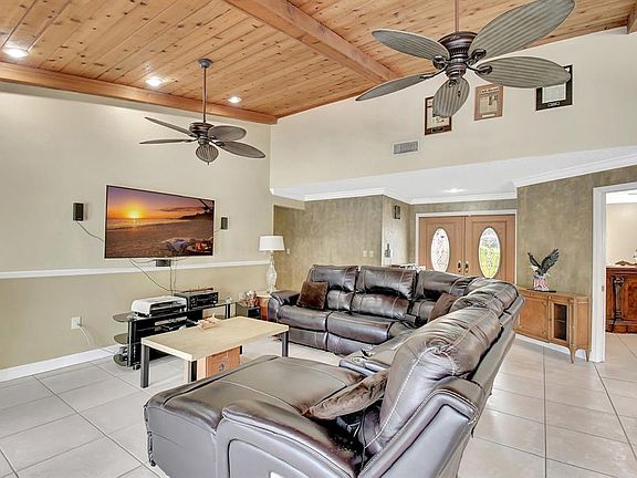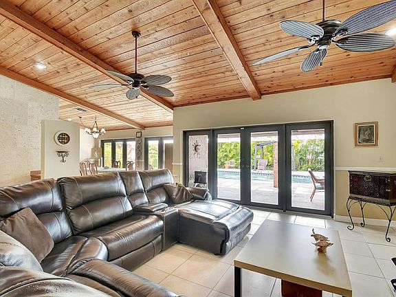 What an AWESOME 3 bed 2 1/2 bath pool home on the end of a cul-de-sac street. This home features volume ceilings, updated bathrooms, a back wall of hurricane impact glass doors, a roof from 2018, an AC from Nov 2024 and a pool that was re surfaced 6 years ago. Sunken conversational pit with a wood burning fireplace. Large primary bedroom with California closets and large walk-in shower. The two other bedrooms also have large closets as well. Great house for entertaining. Oversized tropical back yard with multiple lounging areas and a wood burning fire pit. Close to the highways, shopping, schools, dining, 20-minute drive to Ft Laud Airport and so much more. Great family friendly neighborhood.